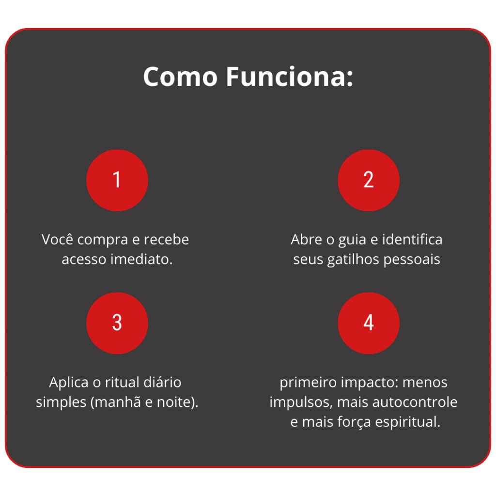 Aqui você recebe: Bíblia + Disciplina + Estratégia prática Criado para homens que precisam de uma saída simples, direta e eficaz.